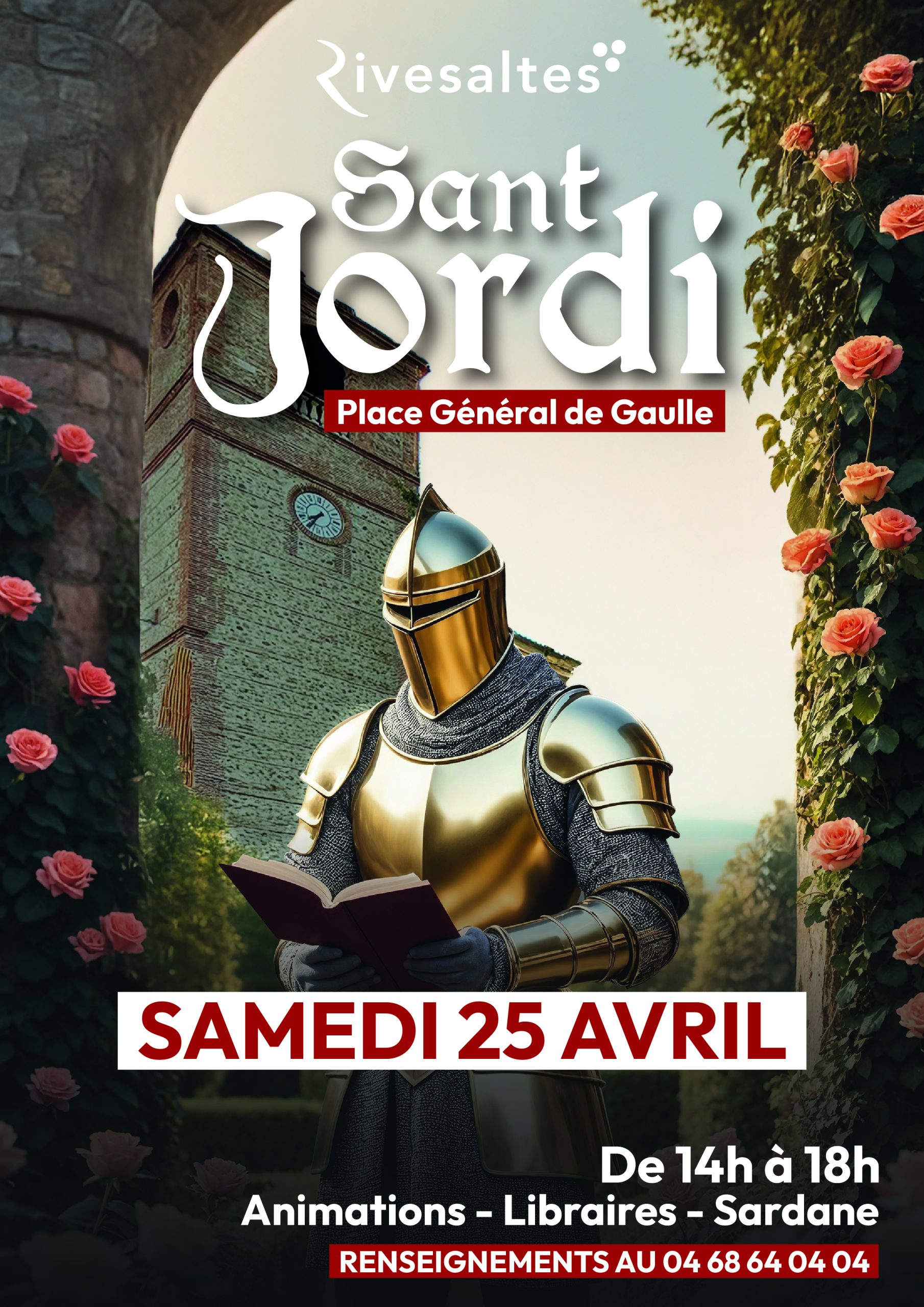 FETE SANT JORDI Vous êtes ici : Accueil > Agenda > Événement Informations au 04 68 64 04 04 + Ajouter à mon Agenda Google Date 25 avril 2026 Heure 14:00 Coût Gratuit Lieu Place du Général de Gaulle Rivesaltes Catégories Culture Partagez cet événement Rechercher : Articles récents COMMÉMORATION COMMÉMORATION ENZO, RÉALISE UN RÊVE FANTASTIQUE ! VERGERS D’ABRICOTIERS SOUS PANNEAUX SOLAIRES LES ABRICOTS BIO DE RIVESALTES Commentaires récents